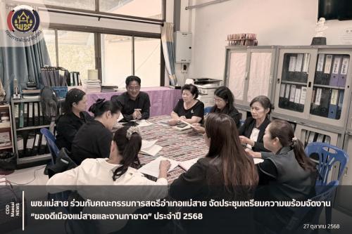 👥นายประเสริฐ ขันทะ พัฒนาการอำเภอแม่สาย พร้อมด้วย ประธานคณะกรรมการพัฒนาสตรีตำบล ประชุมเตรียมความพร้อมจัดงาน “ของดีเมืองแม่สายและงานกาชาด” ประจำปี 2568