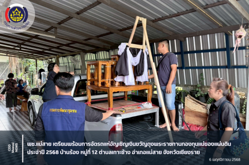 พช.แม่สาย เตรียมพร้อมการจัดรถแห่อัญเชิญเงินขวัญถุงพระราชทานกองทุนแม่ของแผ่นดิน ประจำปี 2568 บ้านร้อง หมู่ที่ 12 ตำบลเกาะช้าง อำเภอแม่สาย จังหวัดเชียงราย