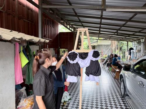 นายประเสริฐ ขันทะ พัฒนาการอำเภอแม่สาย พร้อมด้วยเจ้าหน้าที่พัฒนาชุมชนอำเภอแม่สาย ร่วมกับนายสมศักดิ์ แก้วดุลดุก ประธานหมู่บ้านต้นกล้ากองทุนแม่ของแผ่นดินบ้านร้อง และคณะกรรมการฯ เตรียมความพร้อมหมู่บ้านในการจัดรถแห่อัญเชิญเงินขวัญถุงพระราชทานกองทุนแม่ของแผ่นดิน ประจำปี 2568