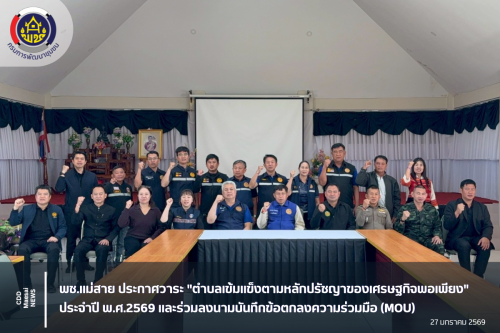 พช.แม่สาย ประกาศวาระ “ตำบลเข้มแข็งตามหลักปรัชญาของเศรษฐกิจพอเพียง” ประจำปี พ.ศ. 2569 และร่วมลงนามบันทึกข้อตกลงความร่วมมือ (MOU) กับ 7 ภาคีเครือข่ายการพัฒนา