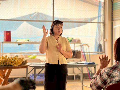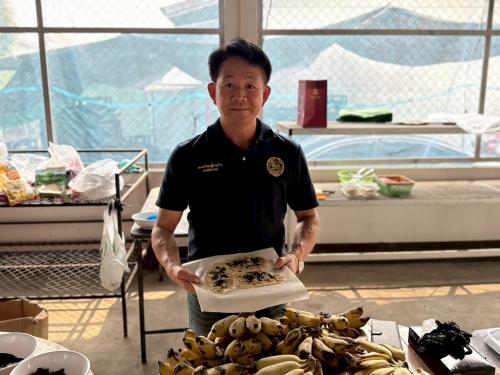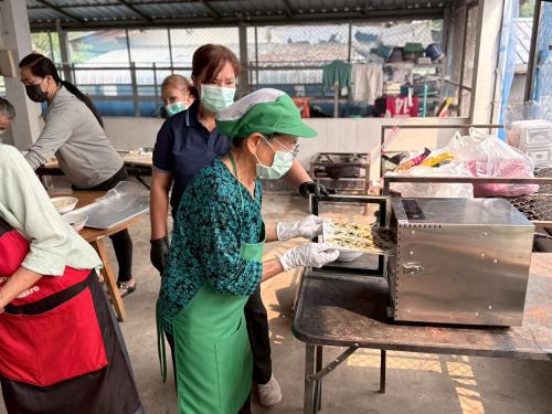 นางประพิมพา วัฒนา พัฒนาการอำเภอแม่สาย พร้อมด้วยเจ้าหน้าที่พัฒนาชุมชนอำเภอแม่สาย ได้ดำเนินโครงการพัฒนาผู้นำการเปลี่ยนแปลง กิจกรรมย่อยที่ 2 สร้างพลังเครือข่ายและขยายผลผู้นำการเปลี่ยนแปลง โดยทีมครู ข. ซึ่งผ่านการอบรมเสริมสร้างสมรรถนะผู้นำการเปลี่ยนแปลง หลักสูตร Train the Trainer Course (ครู ข) ได้นำองค์ความรู้มาทบทวน วิเคราะห์ และต่อยอดโครงการส่งเสริมพัฒนาอาชีพแปรรูปกล้วยน้ำหว้าธัญพืชของตำบลศรีเมืองชุม พร้อมทั้งฝึกปฏิบัติการแปรรูปผลิตภัณฑ์ เพื่อสร้างมูลค่าเพิ่มและเตรียมความพร้อมในการขยายผลสู่ชุมชน