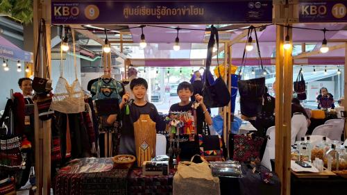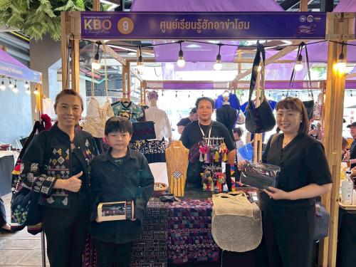 นางประพิมพา วัฒนา พัฒนาการอำเภอแม่สาย พร้อมด้วย นางสาวนงคราญ เบ็ญจาธิกุล เจ้าหน้าที่พัฒนาชุมชน ร่วมกับตัวแทนศูนย์เรียนรู้ฮักอาข่าโฮม ร่วมกิจกรรมการจัดแสดงนิทรรศการนำเสนอผลการดำเนินงานการพัฒนาผลิตภัณฑ์ OTOP และประกวดการพัฒนาผลิตภัณฑ์เด่น OTOP จังหวัดเชียงราย