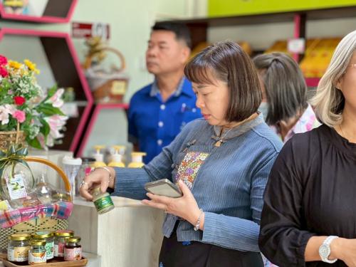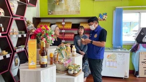 นายวรายุทธ ค่อมบุญ นายอำเภอแม่สาย, นายสิทธิศักดิ์ อินใจคำ ปลัดอำเภอหัวหน้ากลุ่มงานบริหารงานปกครอง, นางประพิมพา วัฒนา พัฒนาการอำเภอแม่สาย และหัวหน้าส่วนราชการ พร้อมด้วยเจ้าหน้าที่พัฒนาชุมชนอำเภอแม่สาย ลงพื้นที่ติดตาม เยี่ยมกลุ่มผู้ผลิต ผู้ประกอบการ OTOP วิสาหกิจชุมชนผลิตภัณฑ์จากผึ้งป่าก๋อย หมู่ 8 ตำบลบ้านด้าย อำเภอแม่สาย จังหวัดเชียงราย เพื่อให้ขวัญกำลังใจ ส่งเสริมช่องทางการตลาดและการพัฒนาผลิตภัณฑ์ให้แก่กลุ่ม OTOP